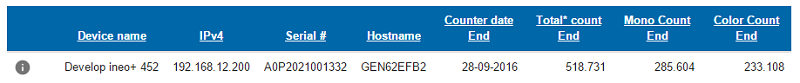 Develop Ineo+ 452 - Supported device information